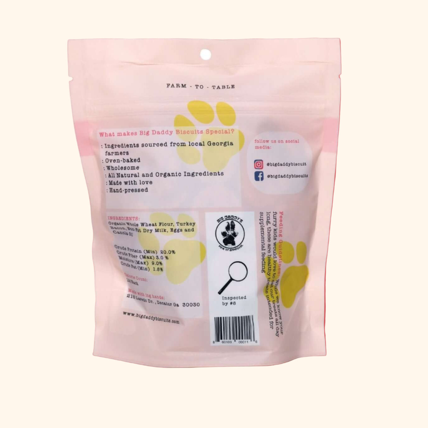 Big Daddy Biscuits All-Natural Turkey Bacon Dog Biscuits are a crowd favorite! Made with the finest ingredients, these biscuits are not only delicious but also packed with protein to keep your furry friend satisfied. The perfect treat for any dog lover!