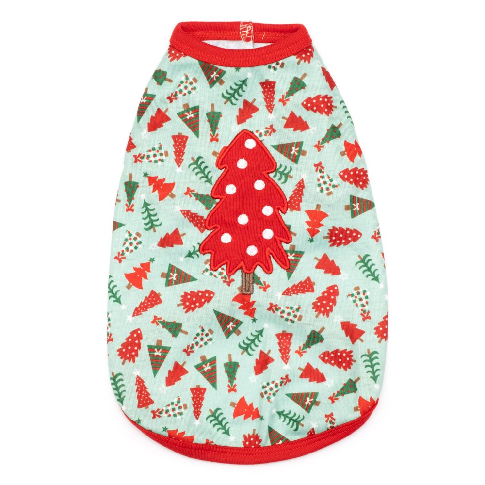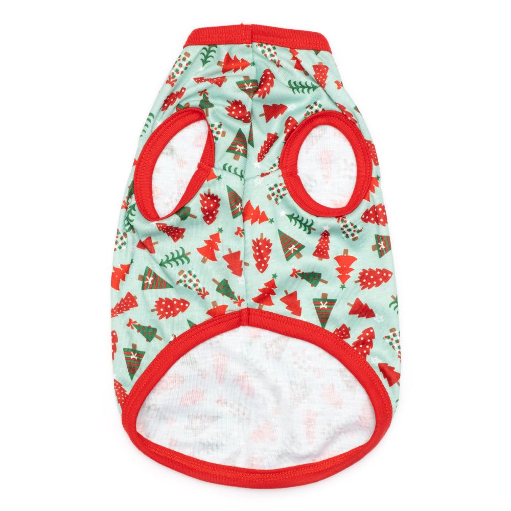 Dress your pup in holiday spirit with this charming Green Holiday Trees Tee, perfect for making a festive impression. The soft, stretchy fabric adapts to any dog's body shape, ensuring comfort during playtime and everyday adventures. Lightweight and breathable, it's ideal for any season. The easy pullover style eliminates dressing stress, while the form-fitting sleeveless design with high-cut belly keeps your dog dry and secure. Complete the look by pairing it with our matching collar and leash for a coordinated, picture-perfect ensemble.